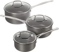 - SUPERIOR STRENGTH: The strong anodized exterior is harder than stainless steel. Each piece is dense, nonporous, and highly wear-resistant for extra durability and professional performance